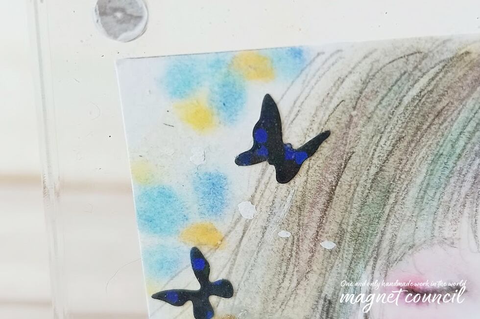 アクリルスタンドの中に原画イラストを入れました
