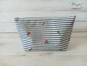 少し張りがある生地で、白とグレーのストライブにサクランボかな??