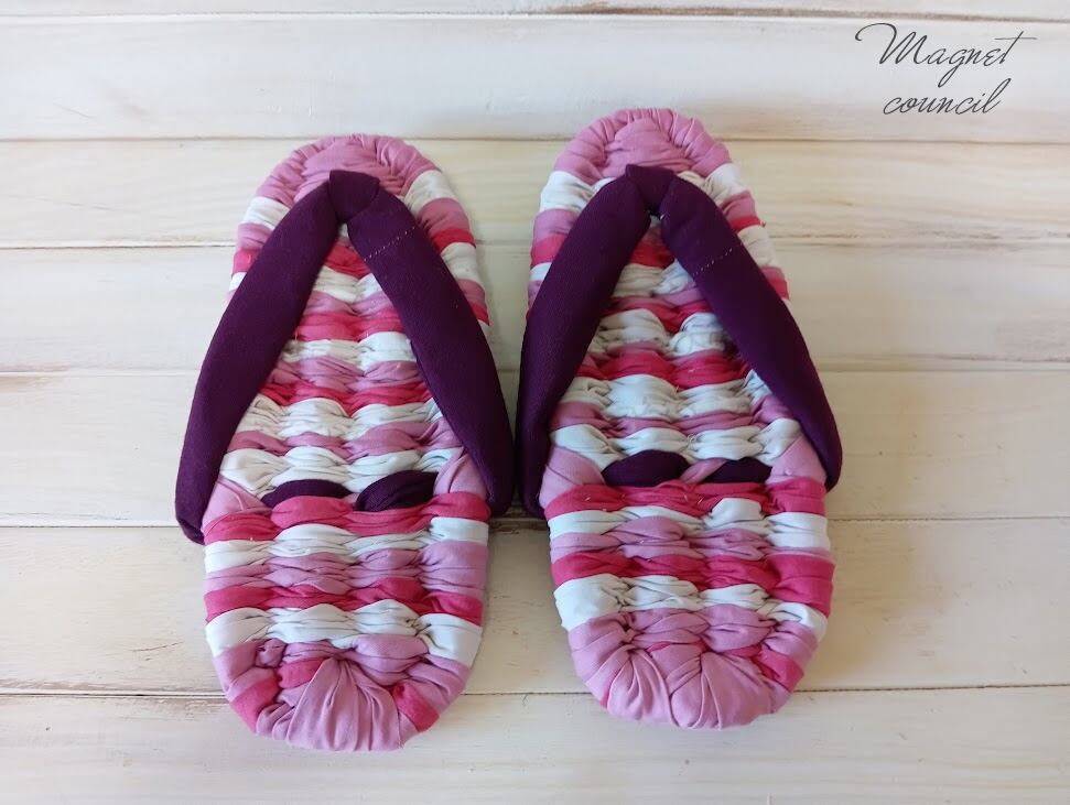 *布草履に足が入りにくい場合、鼻緒の真ん中の紐(前緒)を手でつまんで引っ張り上げるとスムーズに入ります。