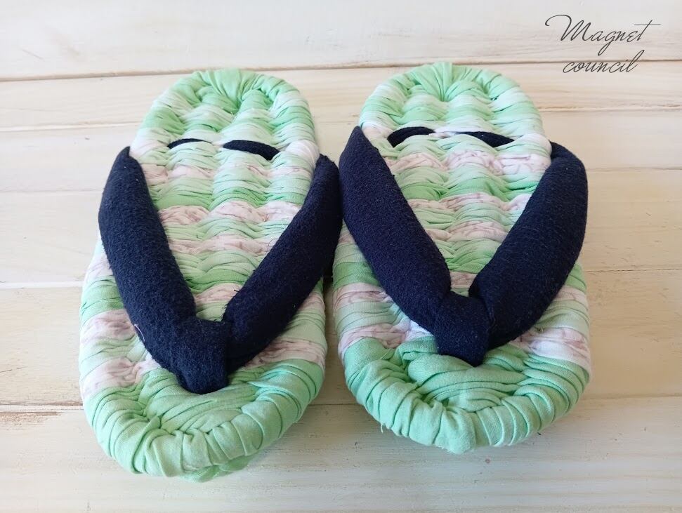 *布草履に足が入りにくい場合、鼻緒の真ん中の紐(前緒)を手でつまんで引っ張り上げるとスムーズに入ります。