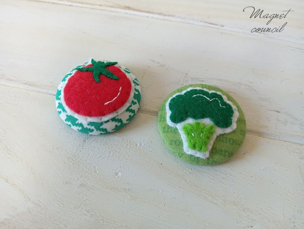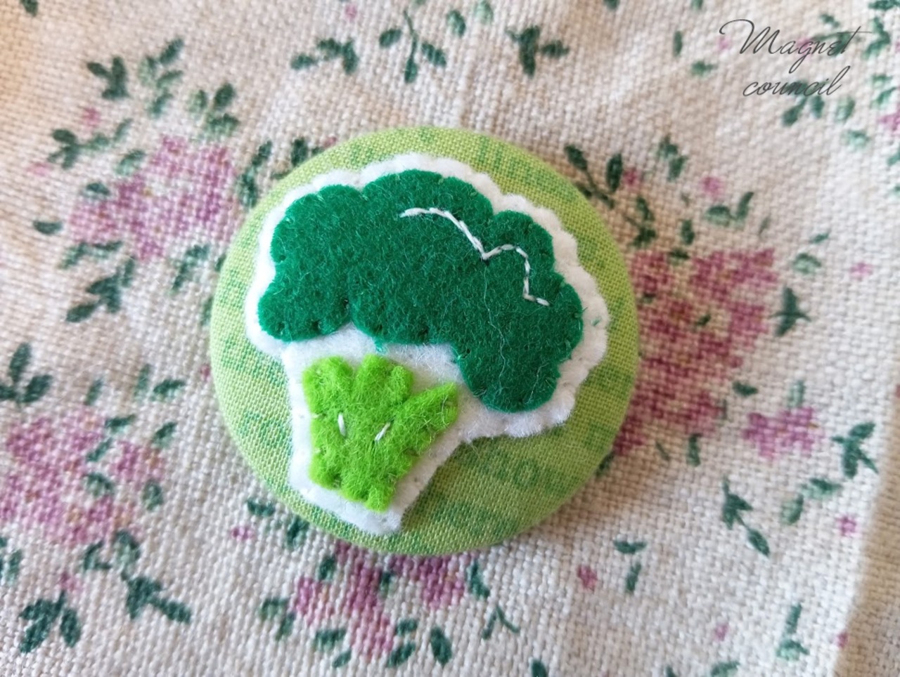 カットクロスにアップリケを施し、くるみボタンへ添付しています。