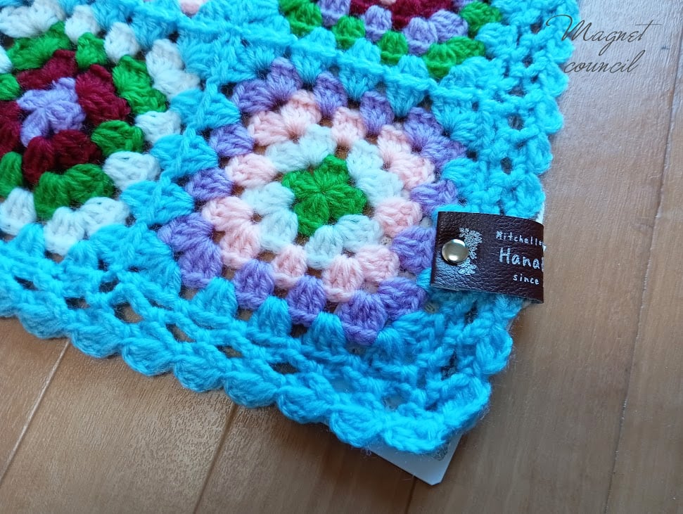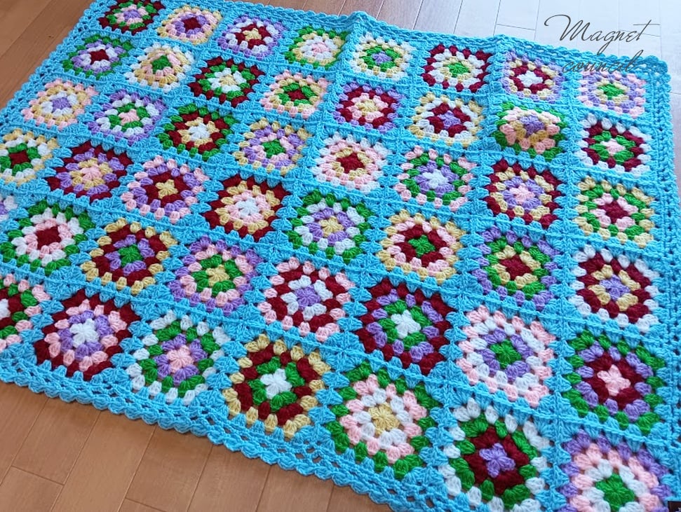 グラニースクエアモチーフをつないだブランケットです。