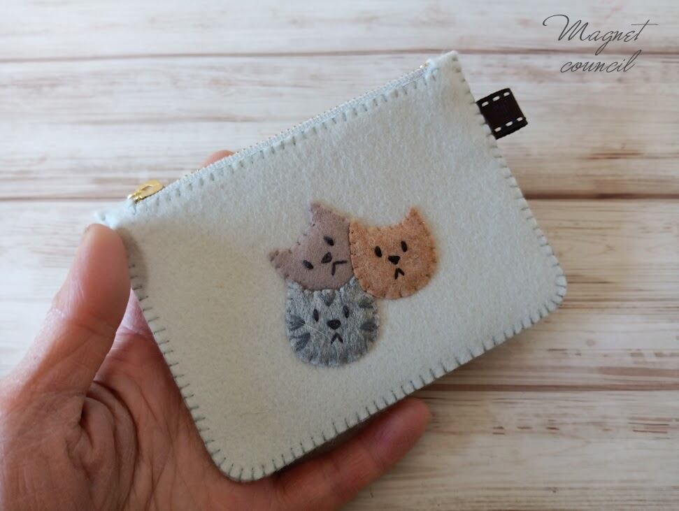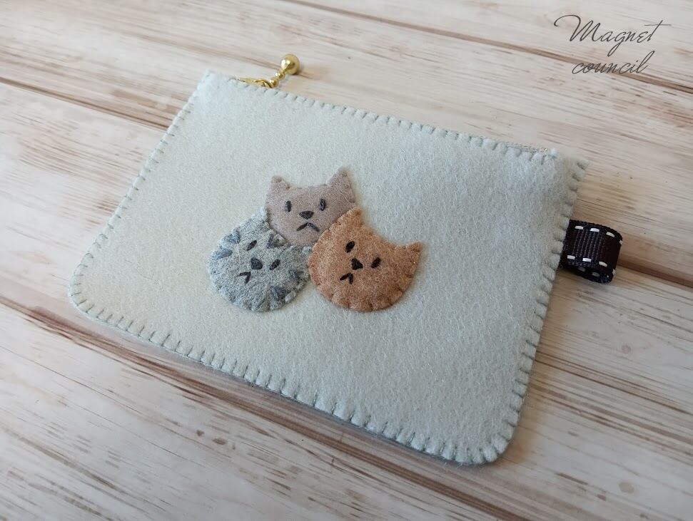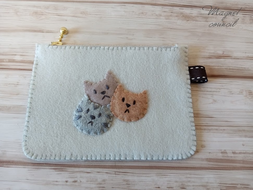 ミニフェルトポーチ(ファスナータイプ・ネコブルー)