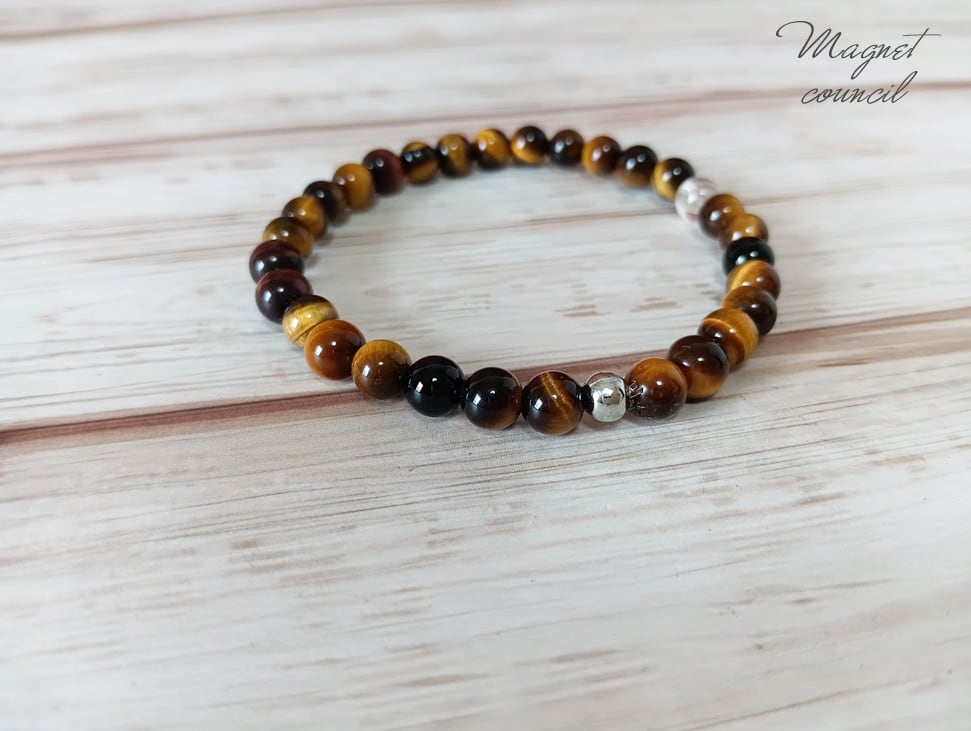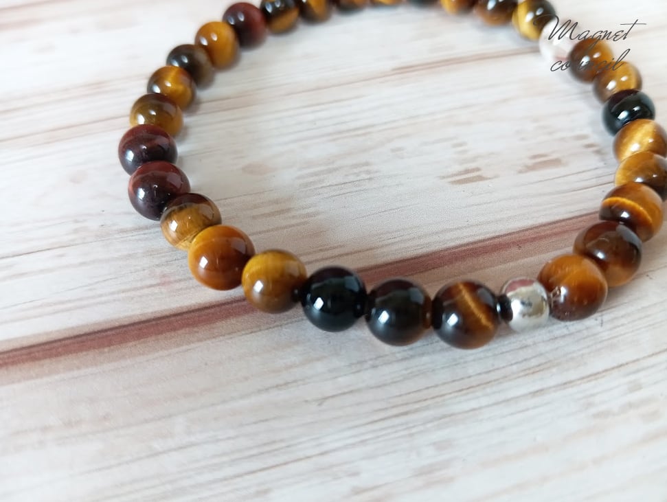 「虎の目」のように鋭い輝きを放つタイガーアイを贅沢に使用したブレスレットです。