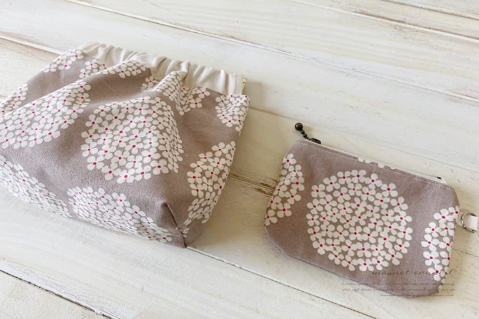 バネポーチ ミニポーチ セット(グレー地に白花柄)