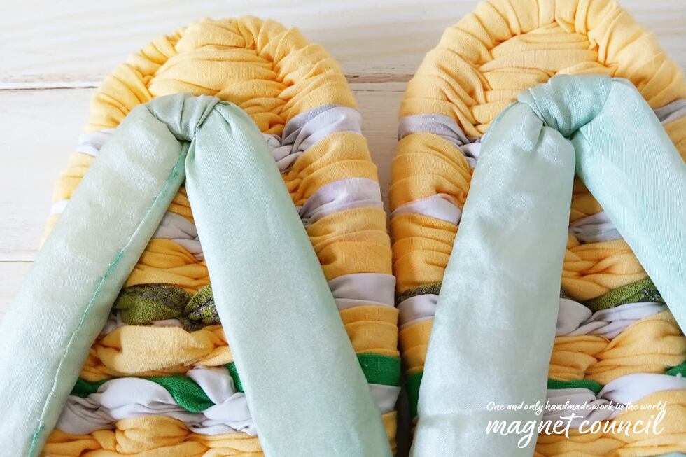 ・布草履に足が入りにくい場合、鼻緒の真ん中の紐(前緒)を手でつまんで引っ張り上げるとスムーズに入ります。